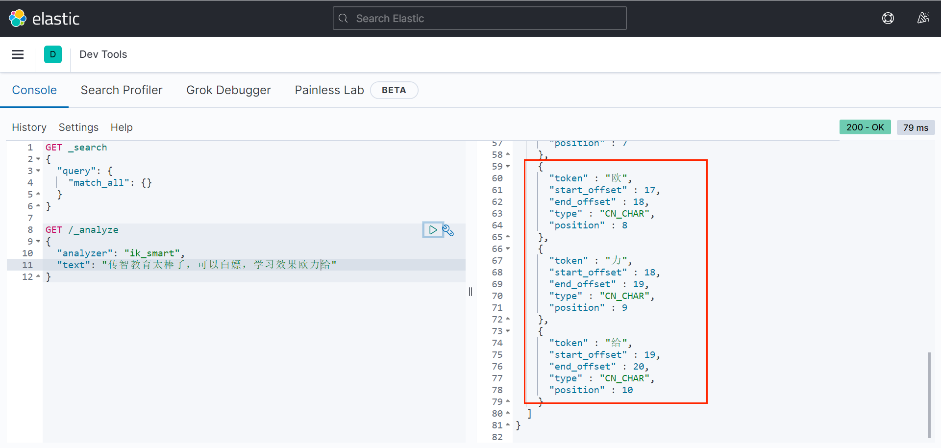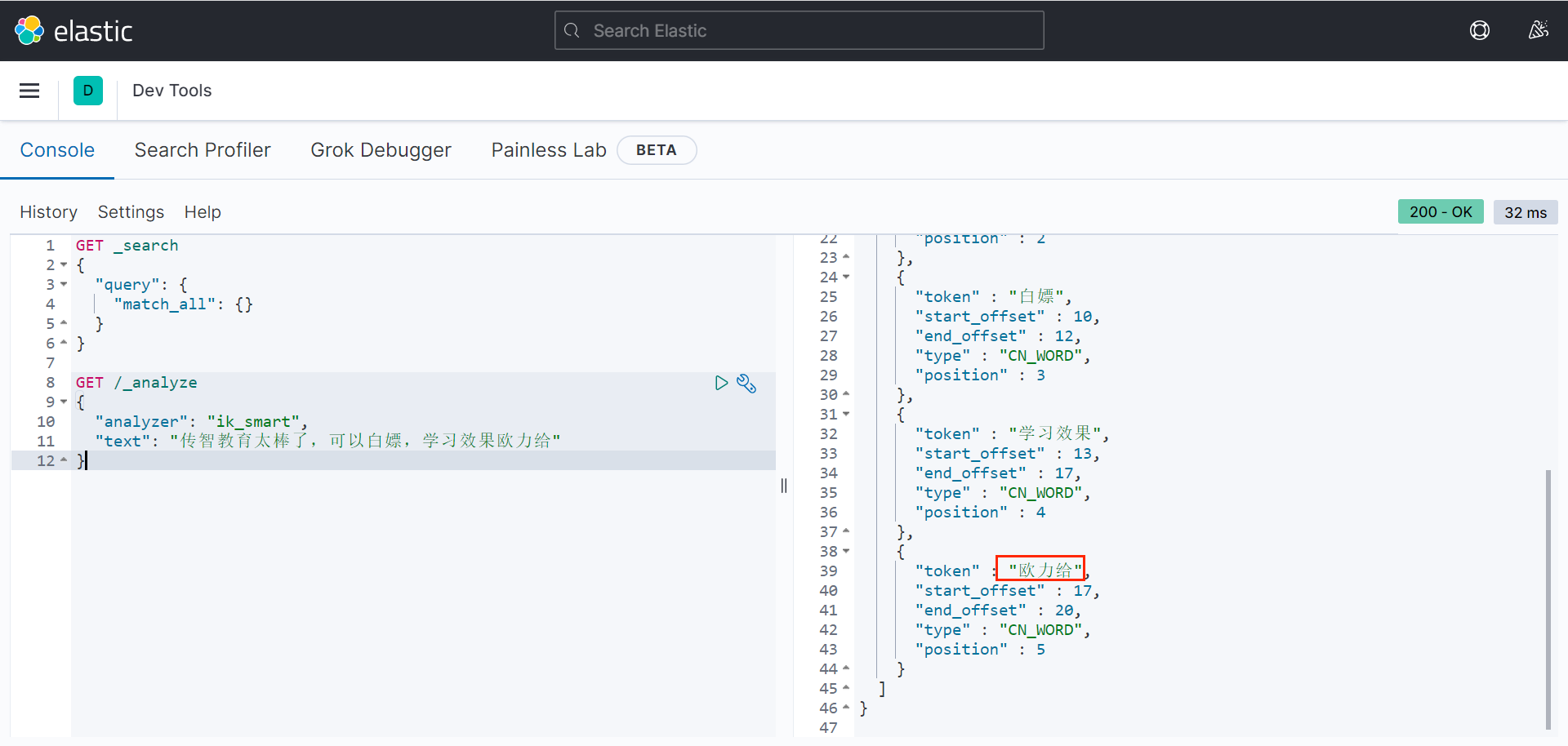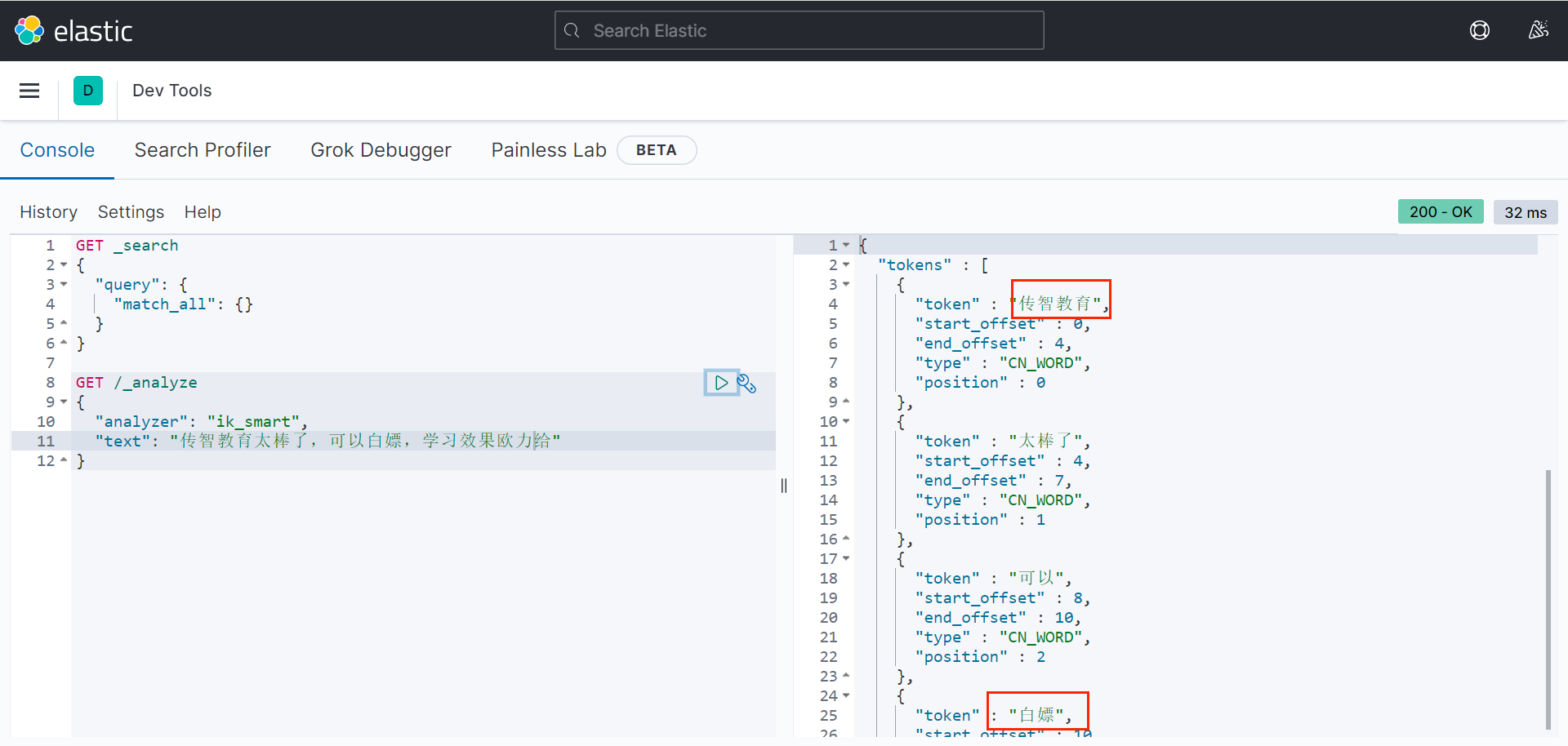 GET /_analyze { "analyzer": "ik_max_word", "text": "黑马程序员学习java太棒了" }