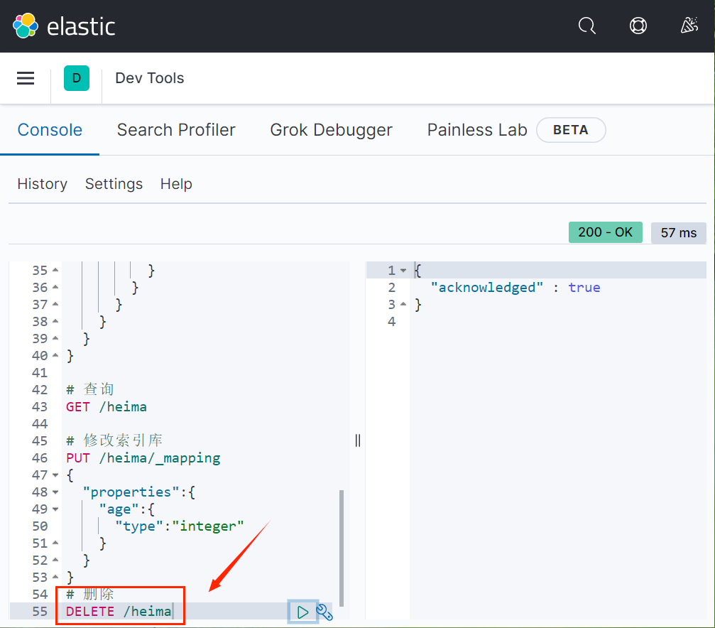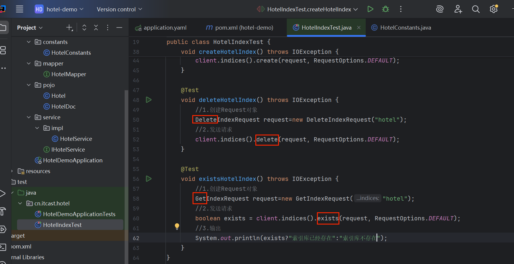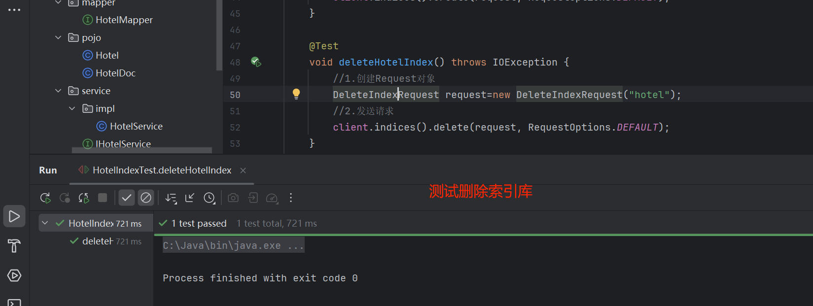 DeleteIndexRequest request=new DeleteIndexRequest("hotel");