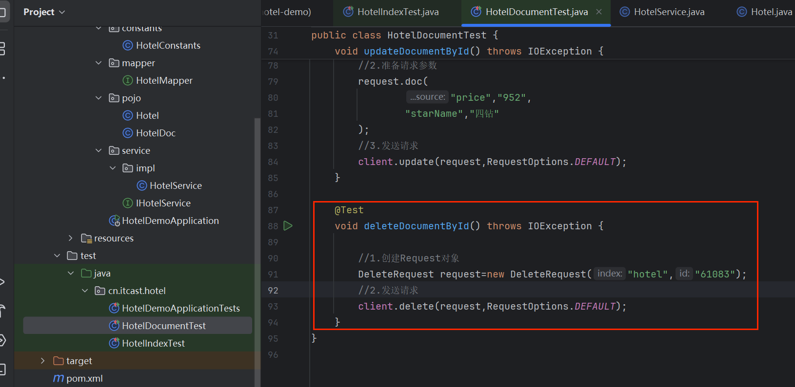 DeleteRequest request=new DeleteRequest("hotel","61083");