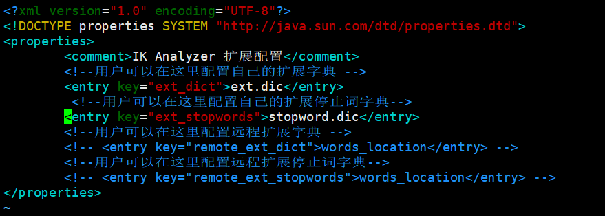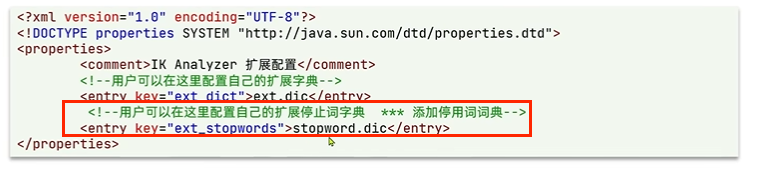 要拓展IK分词器的词库,只需要修改一个IK分词器目录中的config目录中的IKAnalyzer.cfg.xml文件:
