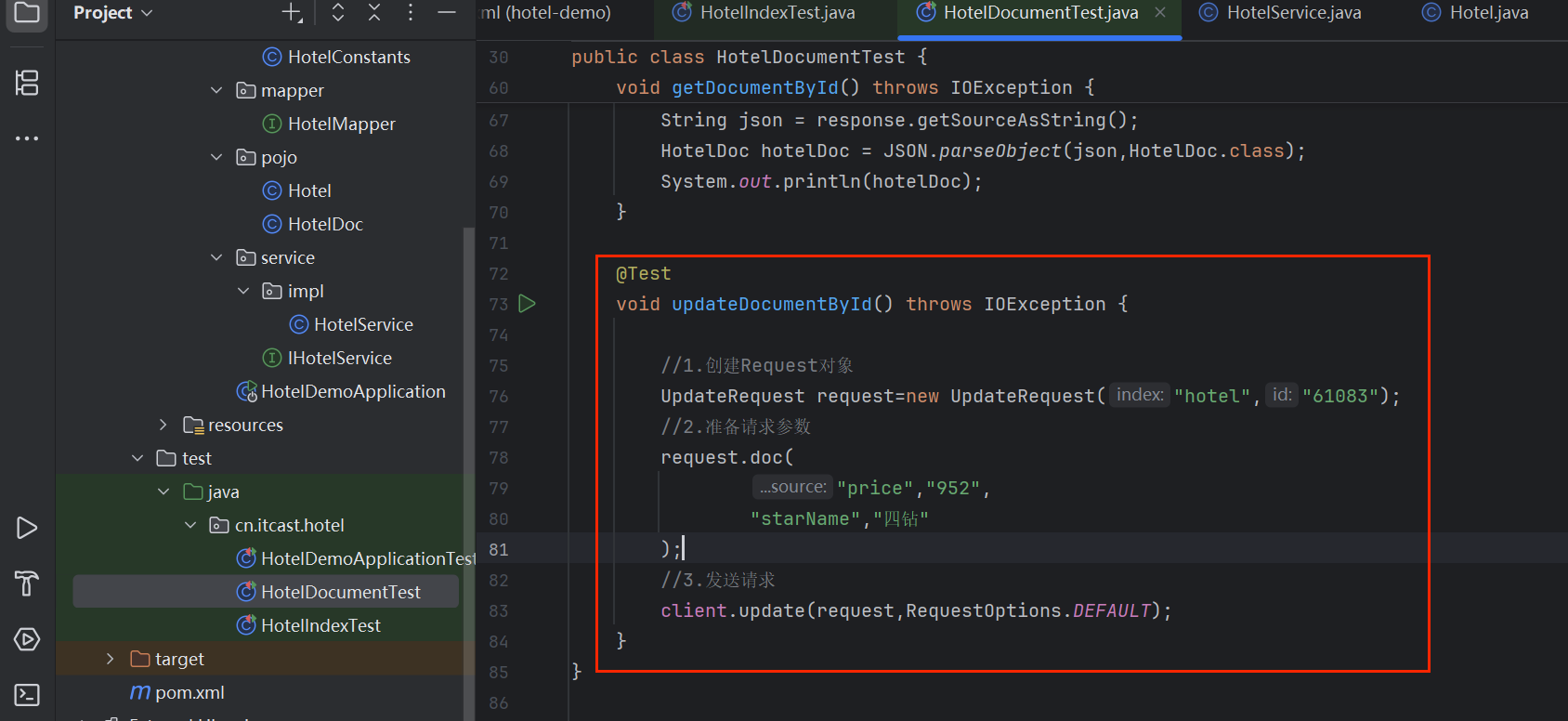 UpdateRequest request=new UpdateRequest("hotel","61083");