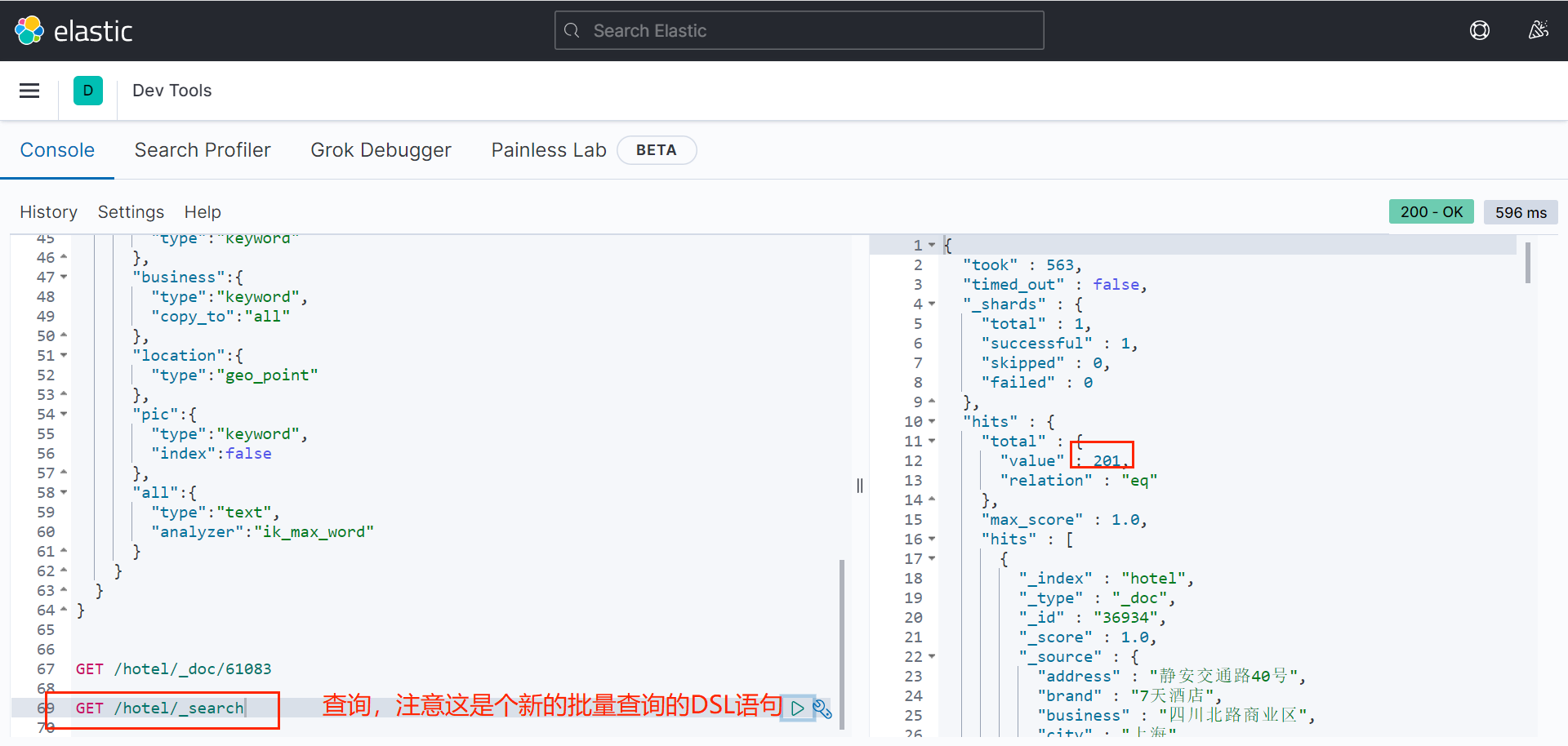 DSL语句的本质就是发送一个Restful请求到ES中。