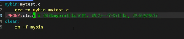 完整写法是这样,.PHONY:clean是修饰clean为目标文件,成为为目标,总是被执行