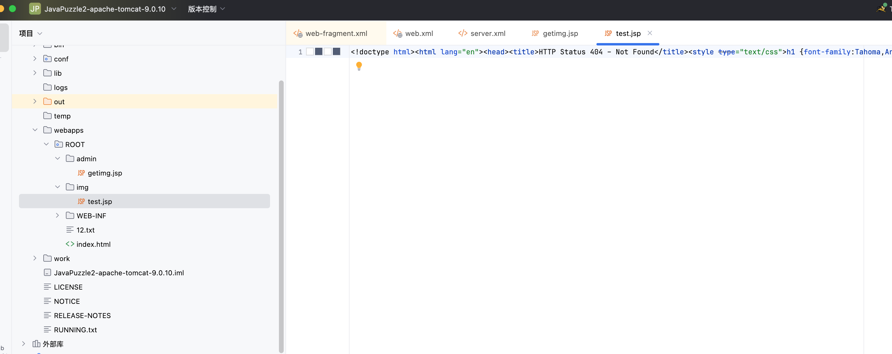使用/admin/getimg.jsp文件测试,发现生成的 jsp 文件报错404,没有达到预期的报错 400 并且把自定义内容写入 test.jsp。