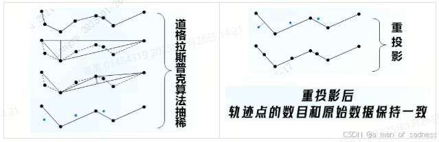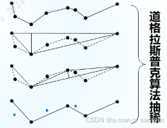 该算法通过保留数据的基本形状来简化曲线或多边形。例如在地理信息系统(GIS)中简化地图数据:在保留车辆行驶GPS轨迹特征的前提下,尽量减少轨迹点的数量