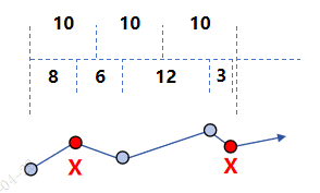 CumulativeTimeBias=6+8≥10,保留,CumulativeTimeBias=14%10=4 - 第4个点间隔12秒: