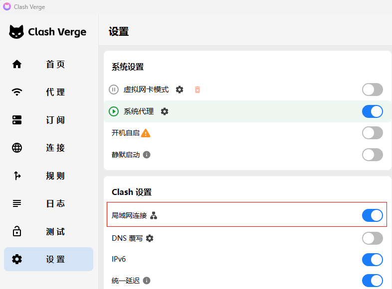 git 代理指向了这个机器,要通过192.168.6.120 代理到github, Class Verge 必须要允许局域网连接(默认是关闭的)