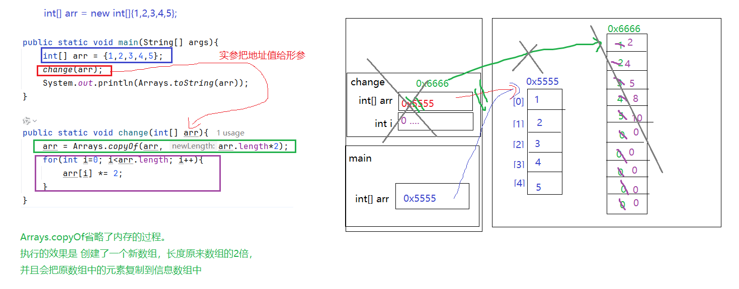 - Arrays.copyOf(原数组,新数组的长度):从原数组复制一些元素构成新数组