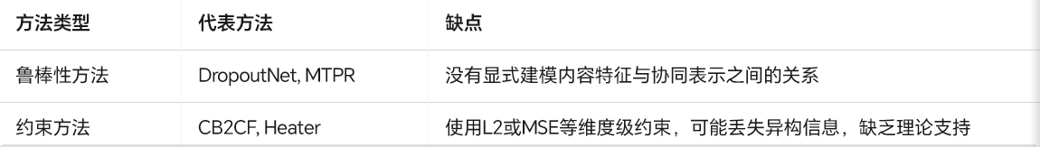 本文指出:现有方法未能充分挖掘内容特征与协同表示之间的互信息(Mutual Information),缺乏理论指导,导致冷启动推荐性能不佳。