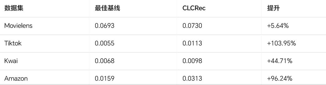 2.冷启动场景下提升更明显(如 Amazon 上提升近 40 倍)