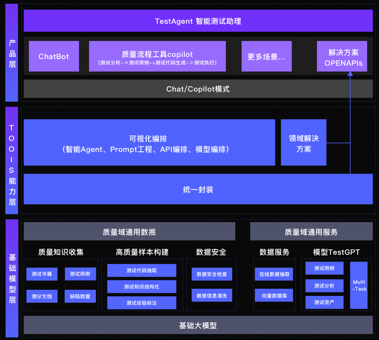 国内首个开源(GitHub,642 Star,74 Fork)测试行业大模型,包含性能最强的7B测试领域大模型,以及配套的本地模型快速发布和体验工程化框架。旨在构建测试领域的智能体,融合大模型和质量领域工程化技术,促进质量技术代系升级。