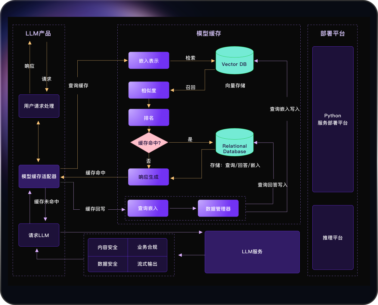开源(GitHub,961 Star,59 Fork)大模型语义缓存系统,通过缓存已生成的模型结果,降低类似请求的响应时间,提升用户体验。从服务优化角度出发,引入缓存机制,在资源有限和对实时性要求较高的场景下,帮助企业和研究机构降低推理部署成本、提升模型性能和效率、提供规模化大模型服务。