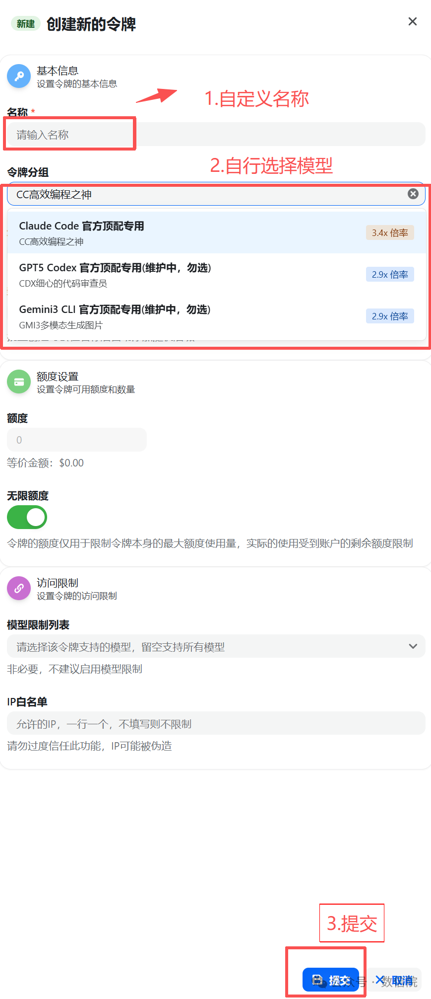 令牌分组:Claude Code 官方顶配专用(必须选择!)