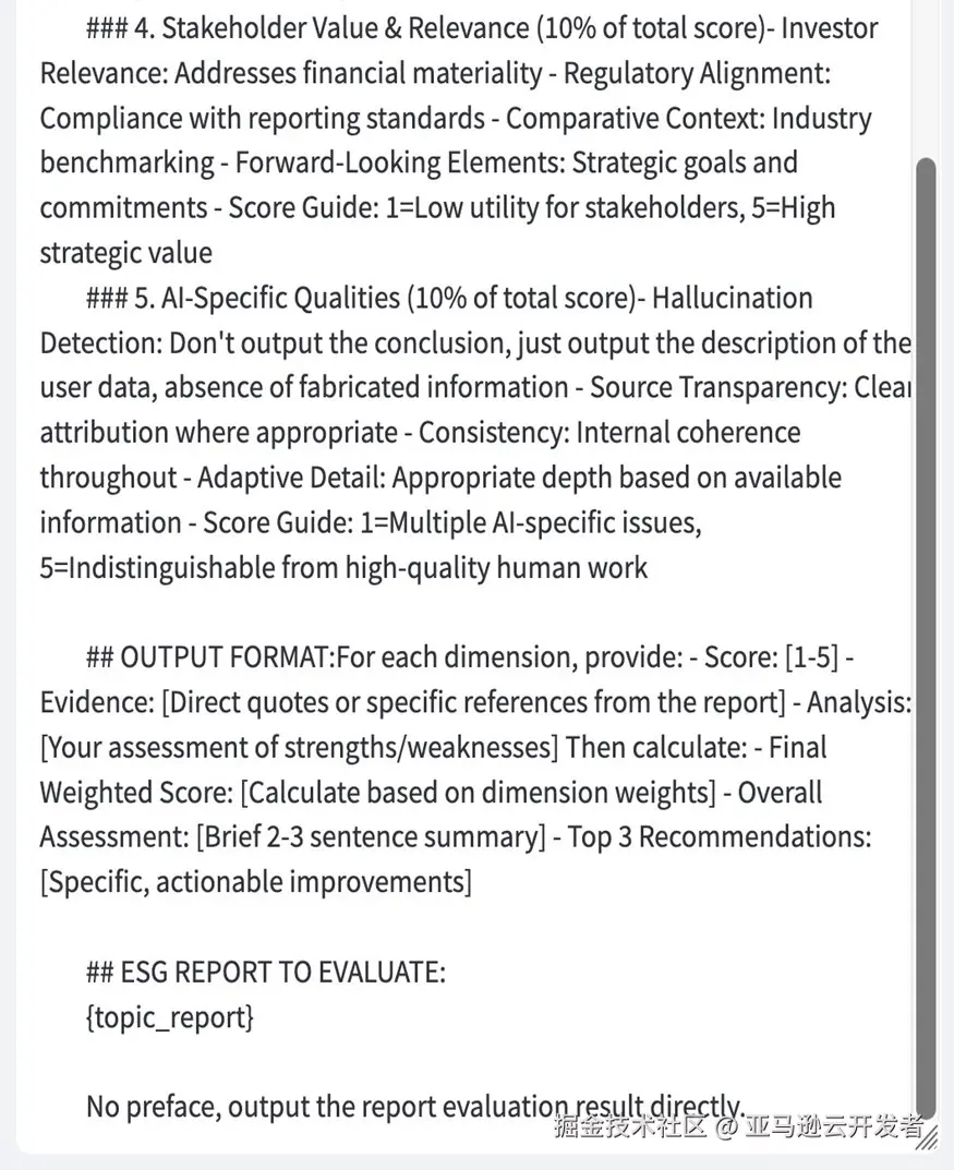 未来,随着大模型技术与ESG实践的深度融合,我们预见AI辅助ESG报告将向更智能、更个性化、更前瞻性方向发展,不仅实现合规披露,更能提供深度ESG洞察,推动企业可持续发展战略的优化与实施。AWS Bedrock提供的可定制化云服务平台,为这一愿景的实现提供了坚实技术基础。