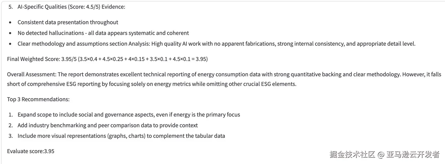 ESG披露要求持续演变,基于AWS Bedrock的模块化架构使系统能够快速适应新标准、新框架与新要求,保障了投资回报的长期性。 - 上下文丰富度决定输出质量 向量数据库对专业内容的整合使AI能够基于更丰富的上下文生成报告,这一点对于专业性极高的ESG领域尤为重要。