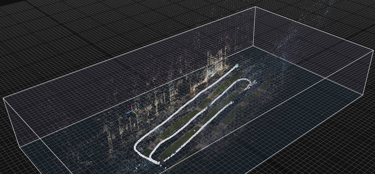 对齐完,只有1k多张有效图片,模拟的路径(下图中白色部分)和实际有些偏差,少了一段路径。