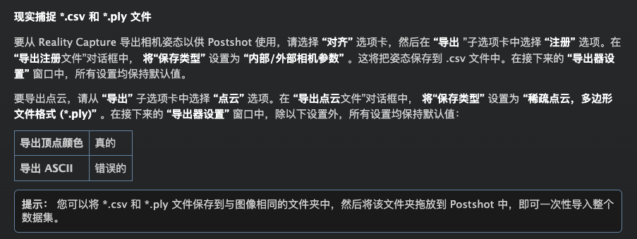 参考postshot的文档[3],可以吧 RealityScan 计算的相机姿态和点云结果放到图像相同的文件夹,就可以直接被读取。