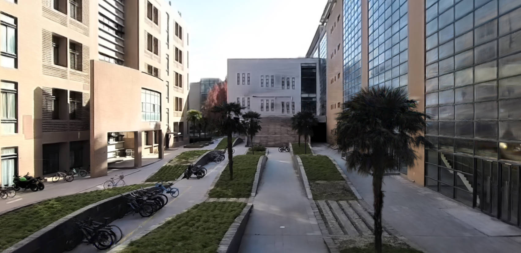 拍摄方式和前文类似,选择一个阳光充足的中午,在教学楼前面采用走了一圈"回"字型,拍摄5.7k 30fps规格的全景视频,共录制约四分钟。