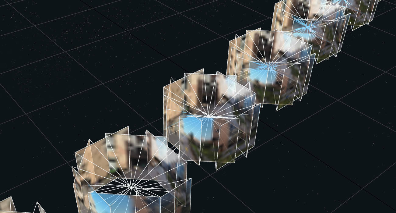 放大看每一个点,由八张图片构成,每一个点都是全景帧,然后被裁切成8个方向。