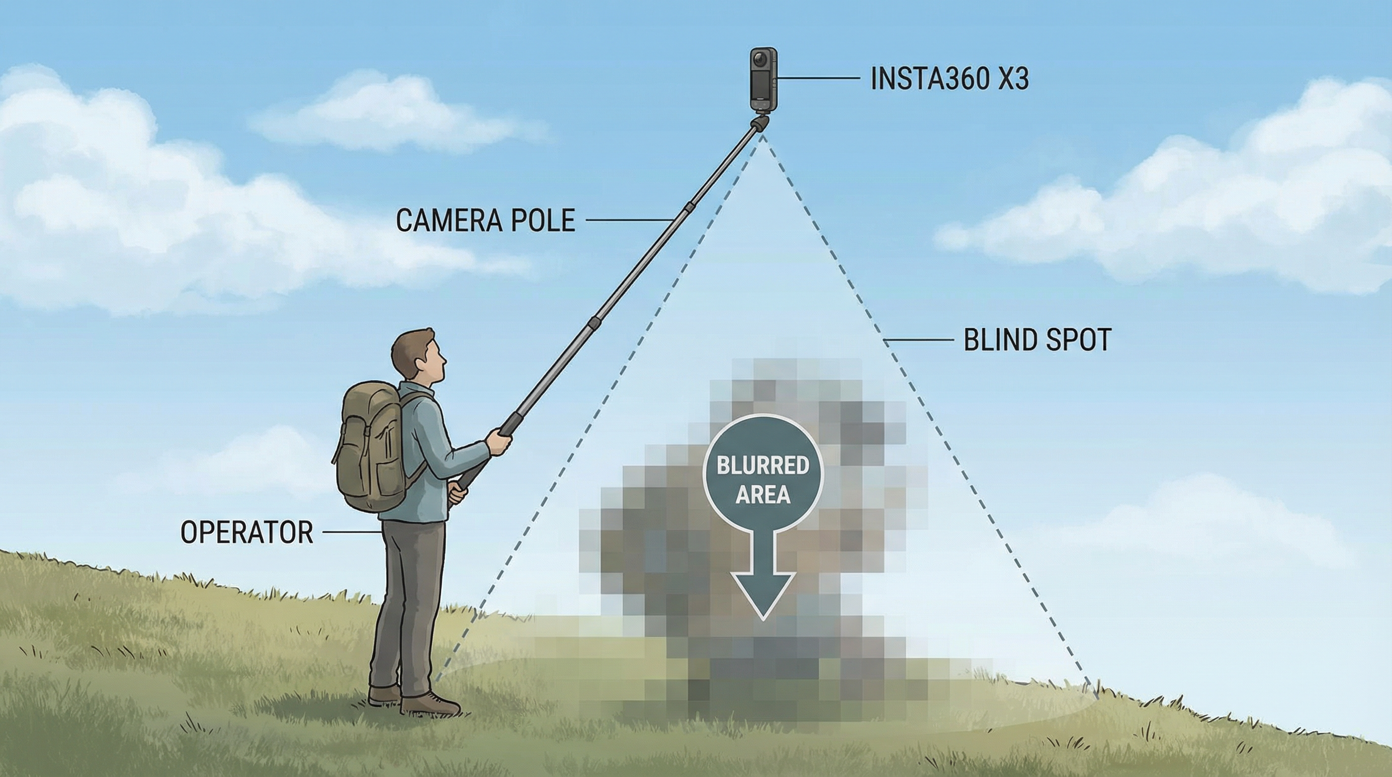 其次,使用全景相机的方案也有一定弱点,由于全景相机拍摄位置较高,底部的一些信息会细节丢失,造成局部重影。