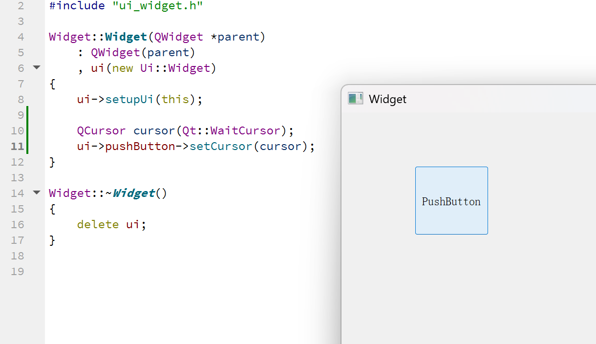 | cursor() | 获取当前控件的 cursor 属性,该属性返回一个 QCursor 对象。当鼠标悬停在该控件上时,将显示对应的光标形状。 |