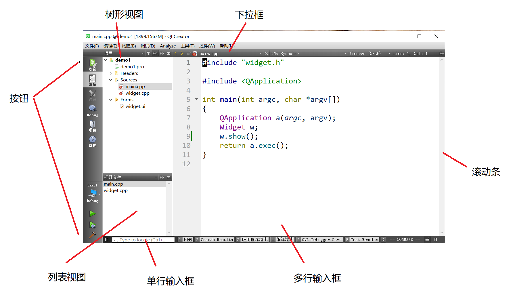 Widget 是 Qt 中的核心概念. 英文原义是 "小部件", 我们此处也把它翻译为 "控件" .