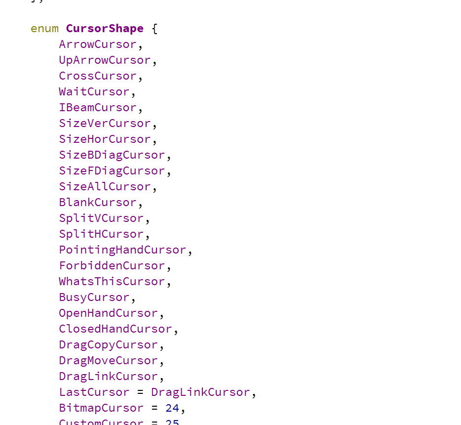 以下是Qt中内置的光标形状: