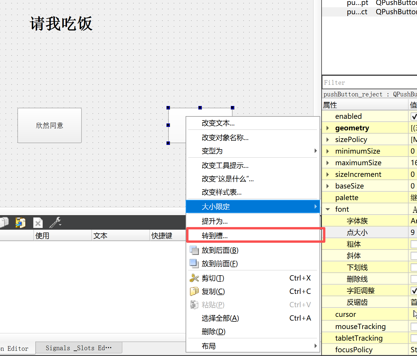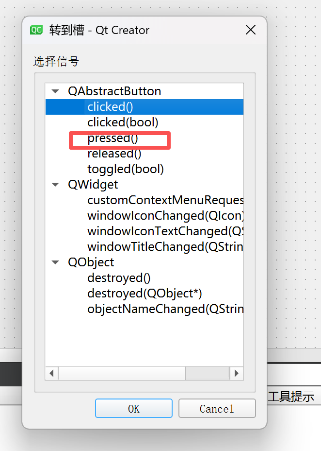 右键按钮,点击转到槽函数后,将信号设成pressed。
