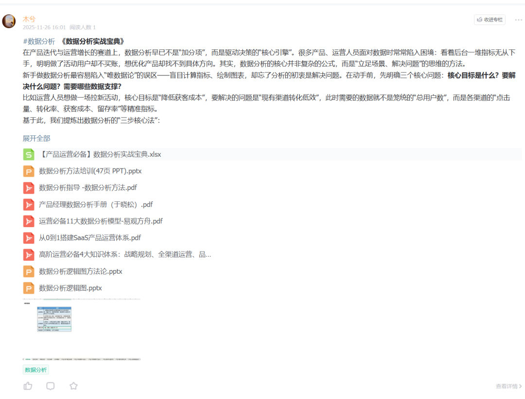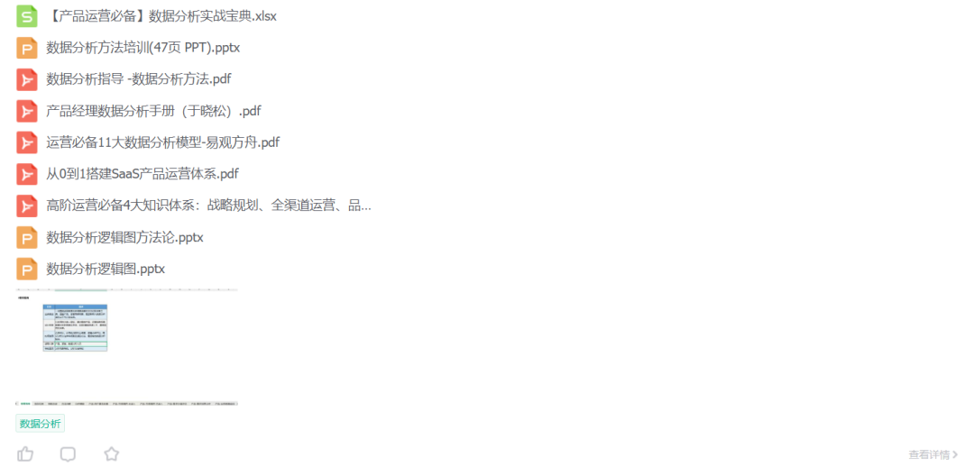 即可各种数据分析思维、工具、课程、书籍、项目、运营、产品相关结构化体系资料~