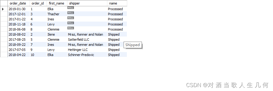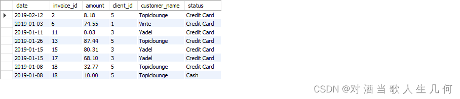 3.查询得到订单日期,订单id,消费金额,顾客名字,支付方式