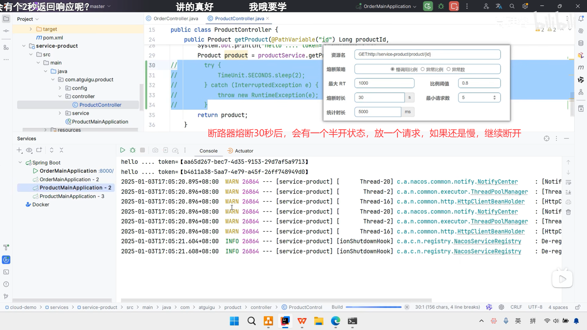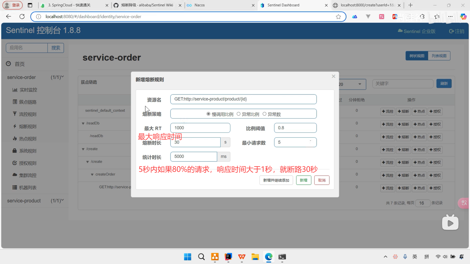 2025最新 SpringCloud 教程,熔断规则-熔断策略-慢调用比例,笔记44