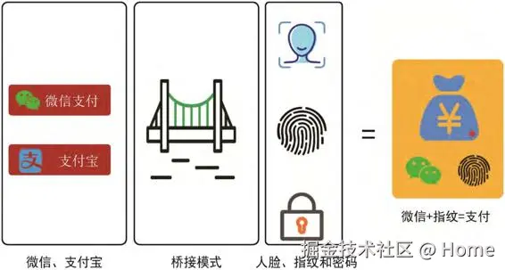 场景描述:商城项目中,集成微信支付和支付宝支付,其中支付方式开始可能只有密码支付,后面又拓展成指纹支付、人脸支付等等,这种拓展就很适合使用桥接设计模式进行拓展