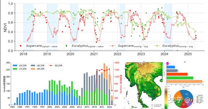 **实践案例:**本案例将详细讲解如何利用LandTrendr算法对干旱和半干旱牧场生态系统进行土地覆盖变化监测。将学习如何处理Landsat长时间序列影像,进行云掩膜处理、大气校正和植被指数计算。案例重点展示如何通过降水和植被指数的回归分析提取残差值,消除气候变化的短期影响。学员将掌握如何应用时间序列分割算法识别植被变化的关键转折点,并基于变化轨迹的相似性进行土地覆盖分类。案例还将介绍如何评估传统土地覆盖数据产品(如MODIS MCD12Q1、ESA WorldCover)在牧场生态系统中的适用性及局限性,以及如何通过聚类方法创建基于轨迹的新型分类系统。如何解读不同类型轨迹所代表的生态学意义,以及如何通过空间统计分析评估变化的时空模式。