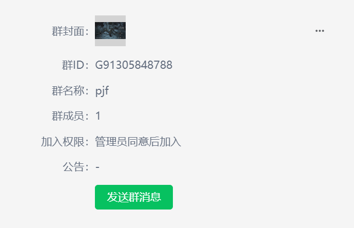 思路:用户信息肯定需要获取,群id也一定需要,只需要判断此用户是否在群以及群是否存在,根据群id查询信息即可,实现简单
