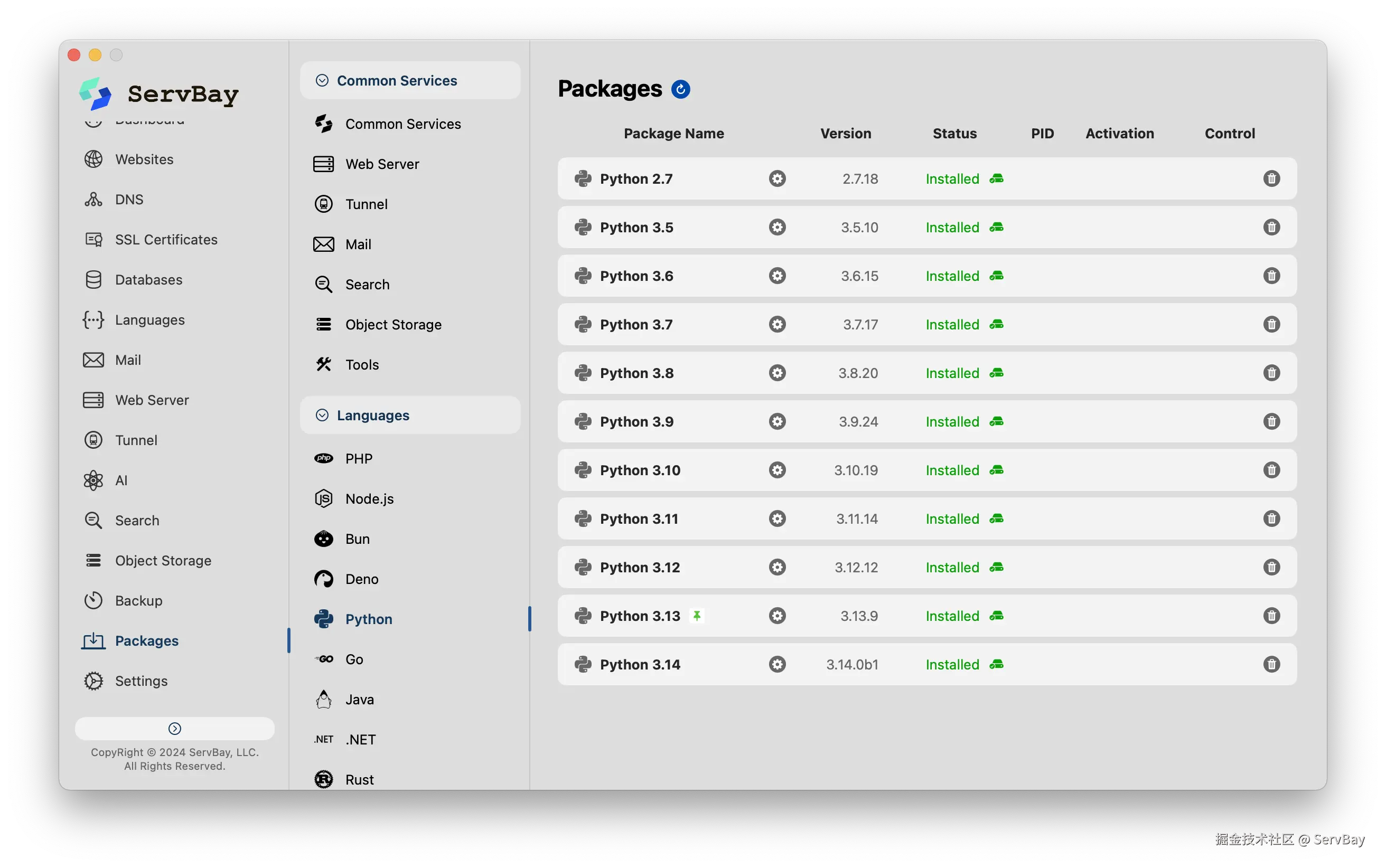 那就不得不介绍ServBay了,这是一款专为开发者设计的环境管理工具。