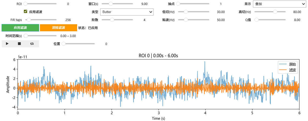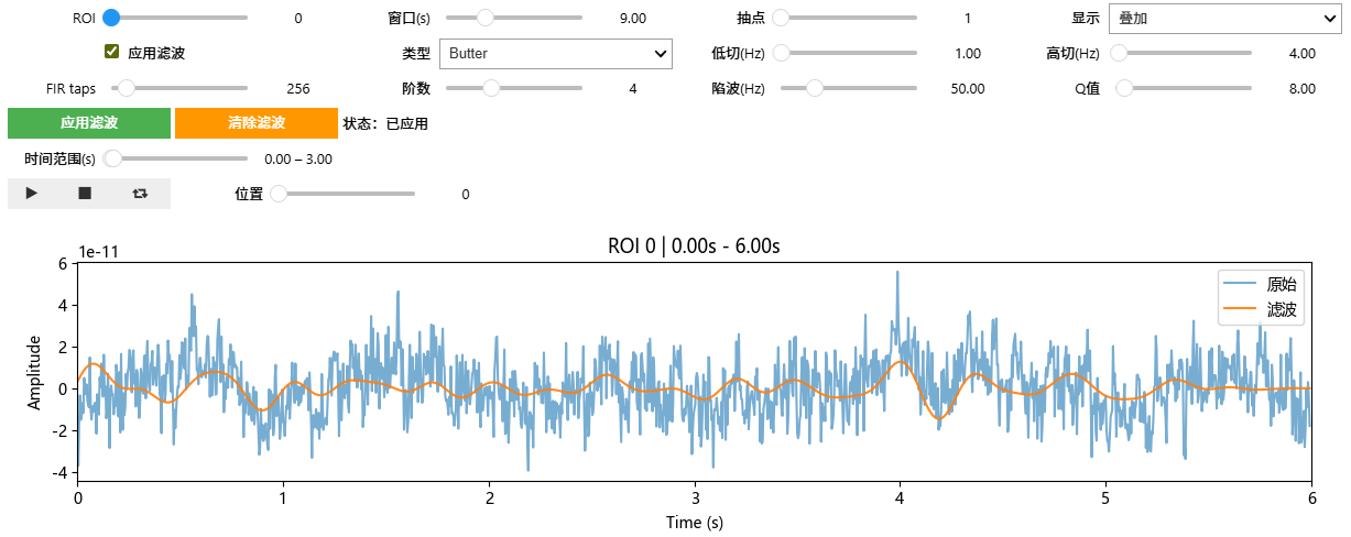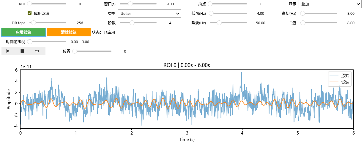 show_mode = widgets.Dropdown(options=['滤波', '原始', '叠加'], value='滤波', description='显示')