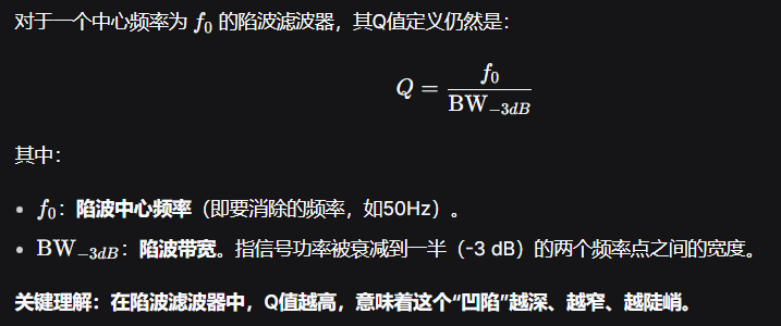 核心关系:Q值决定了陷波滤波器的"陡峭度"和"选择性"