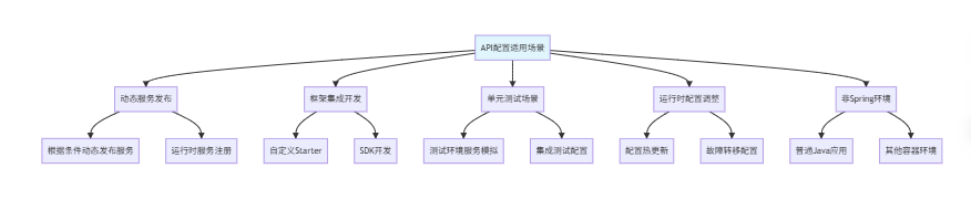 | API配置 | 运行阶段 | 高 | 高 | 中 | 动态场景、框架集成 |