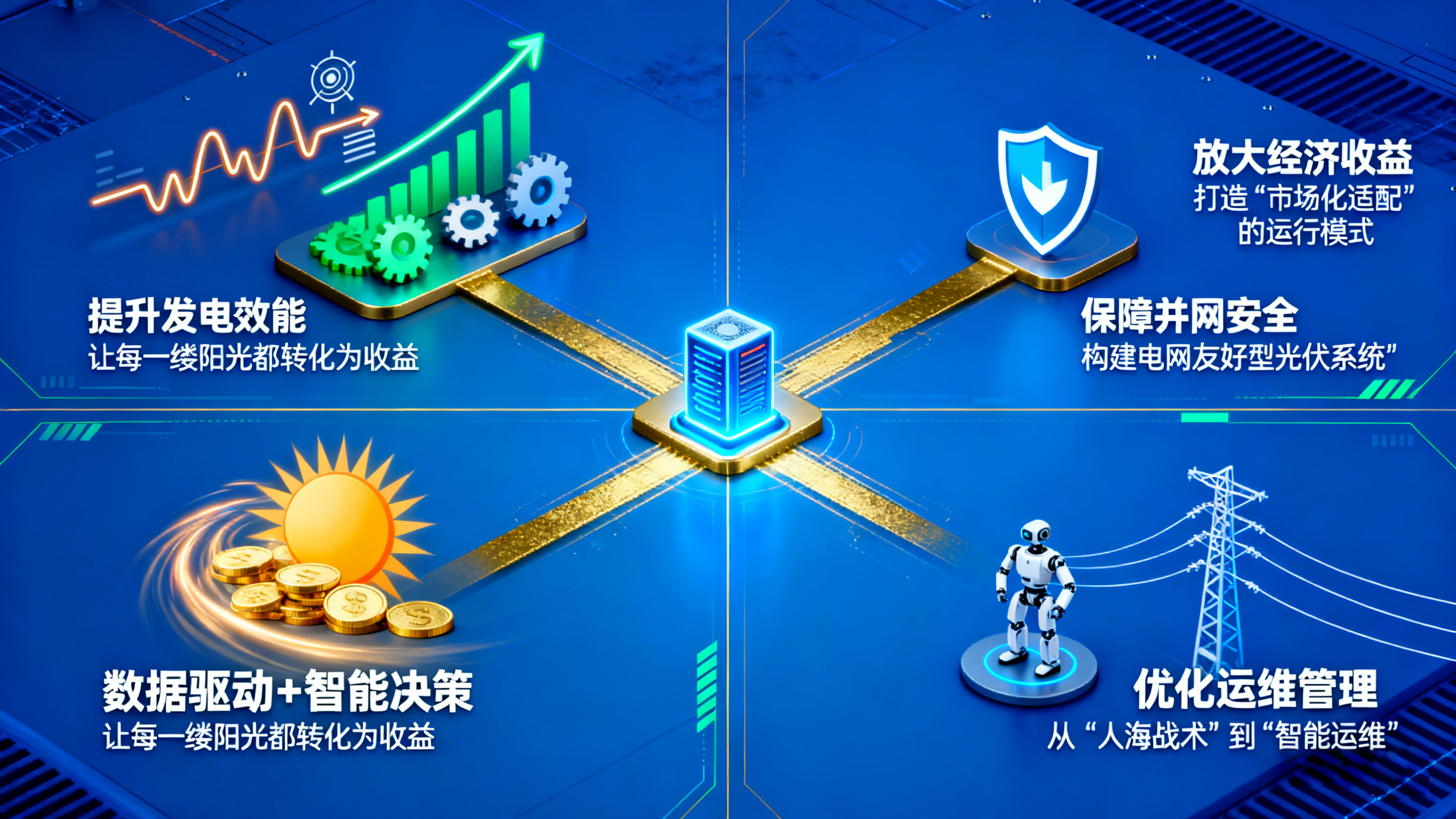 光伏策略控制服务器的应用必要性,本质上是光伏产业从"规模优先"转向"质量优先"的必然产物。它并非简单的技术升级,而是破解光伏产业核心痛点、释放光伏系统价值的"关键变量"------通过提升发电效能、保障并网安全、优化运维管理、放大经济收益,为光伏电站构建起"高效、安全、经济"的运行体系。