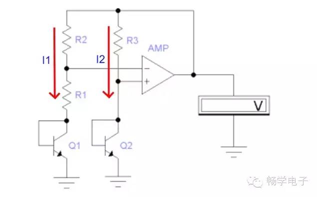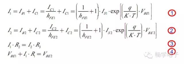 在这里,我们做出本文最重要的一个前提假设:Q1和Q2的反向饱和电流以及hFE是相等的,则