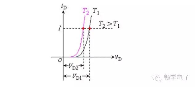 我们知道,二极管的正向电压VF和BJT的VBE都大约是0.6V的样子,而且它们的温度系数约为-2mV/oC,也就是说,在一定温度范围内,温度每升高1oC,它们的正向压降就将减小2mV左右,示意图如下,