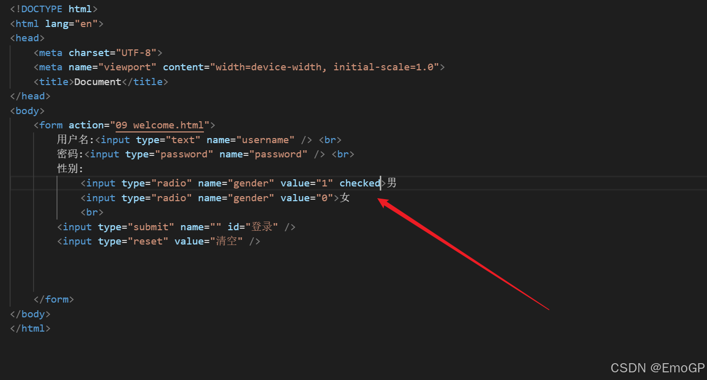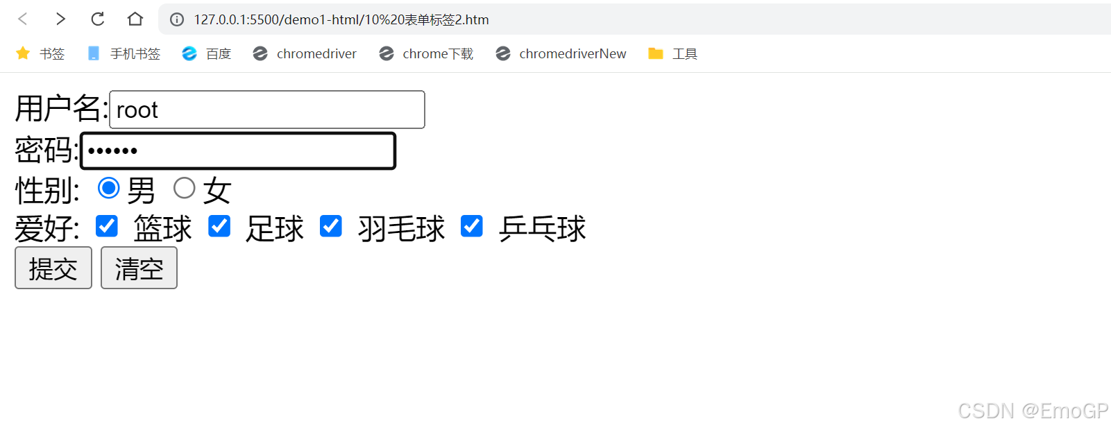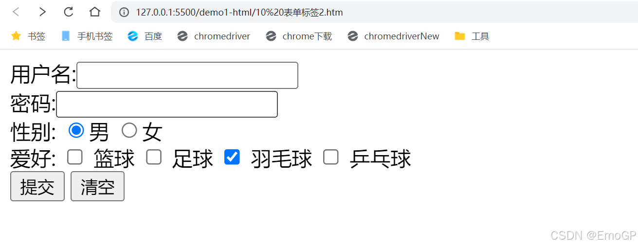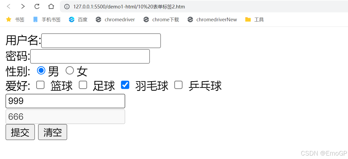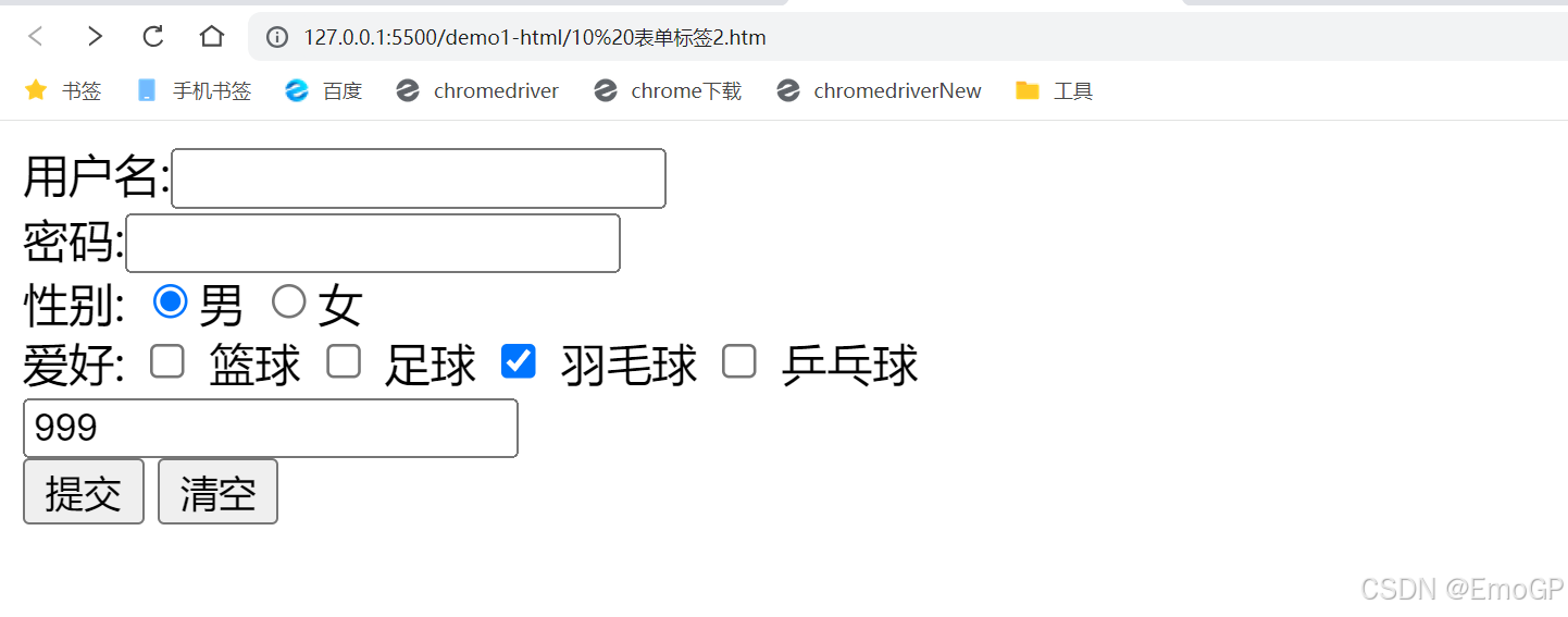 多个单选框使用相同的name属性值,则就会有互斥效果(只能选一个)