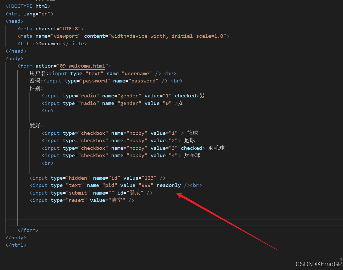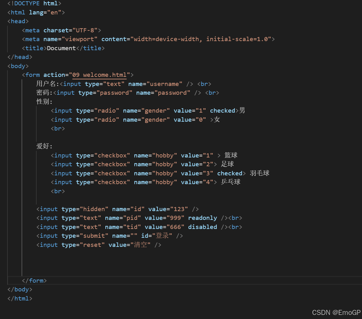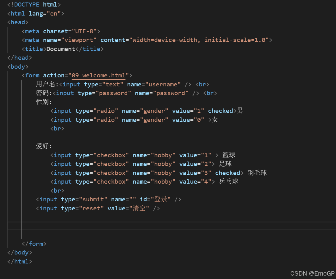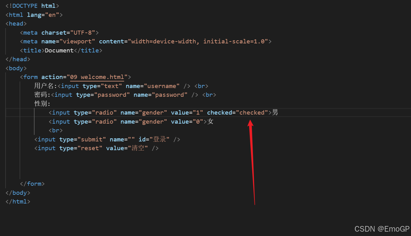 多个单选框使用相同的name属性值,则就会有互斥效果(只能选一个)