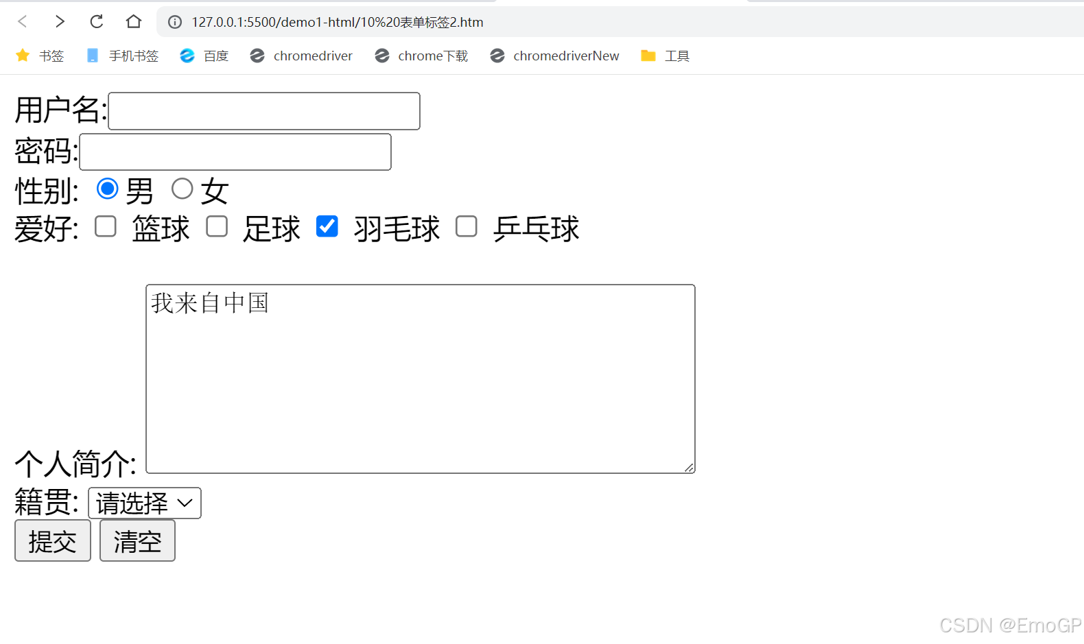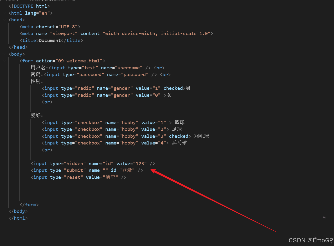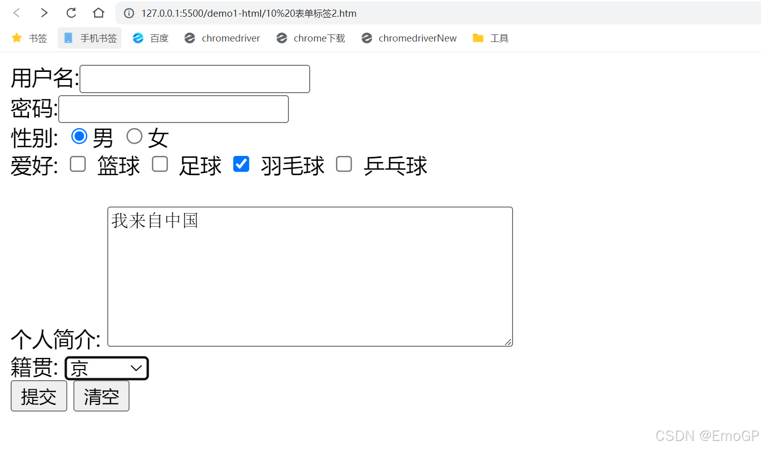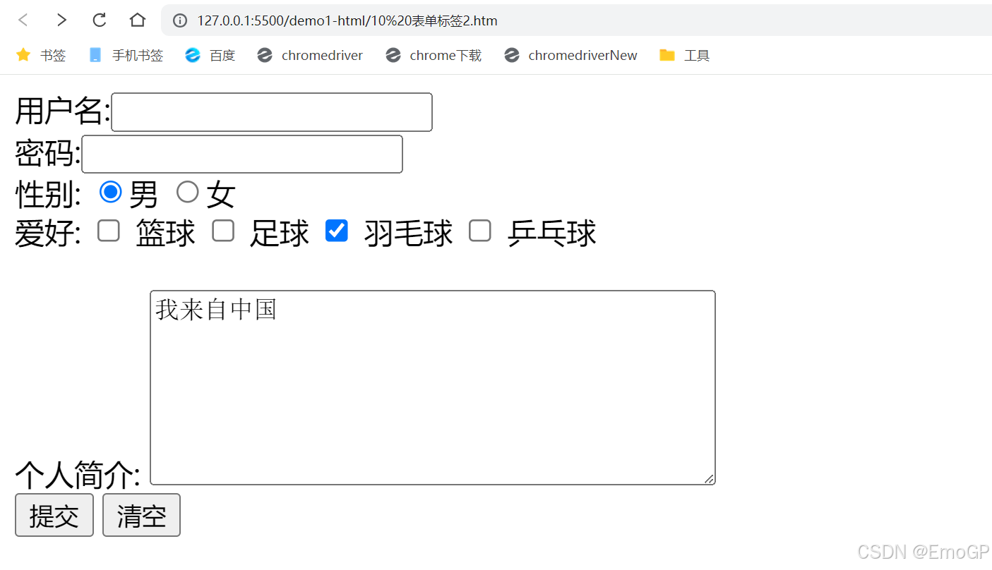多个单选框使用相同的name属性值,则就会有互斥效果(只能选一个)