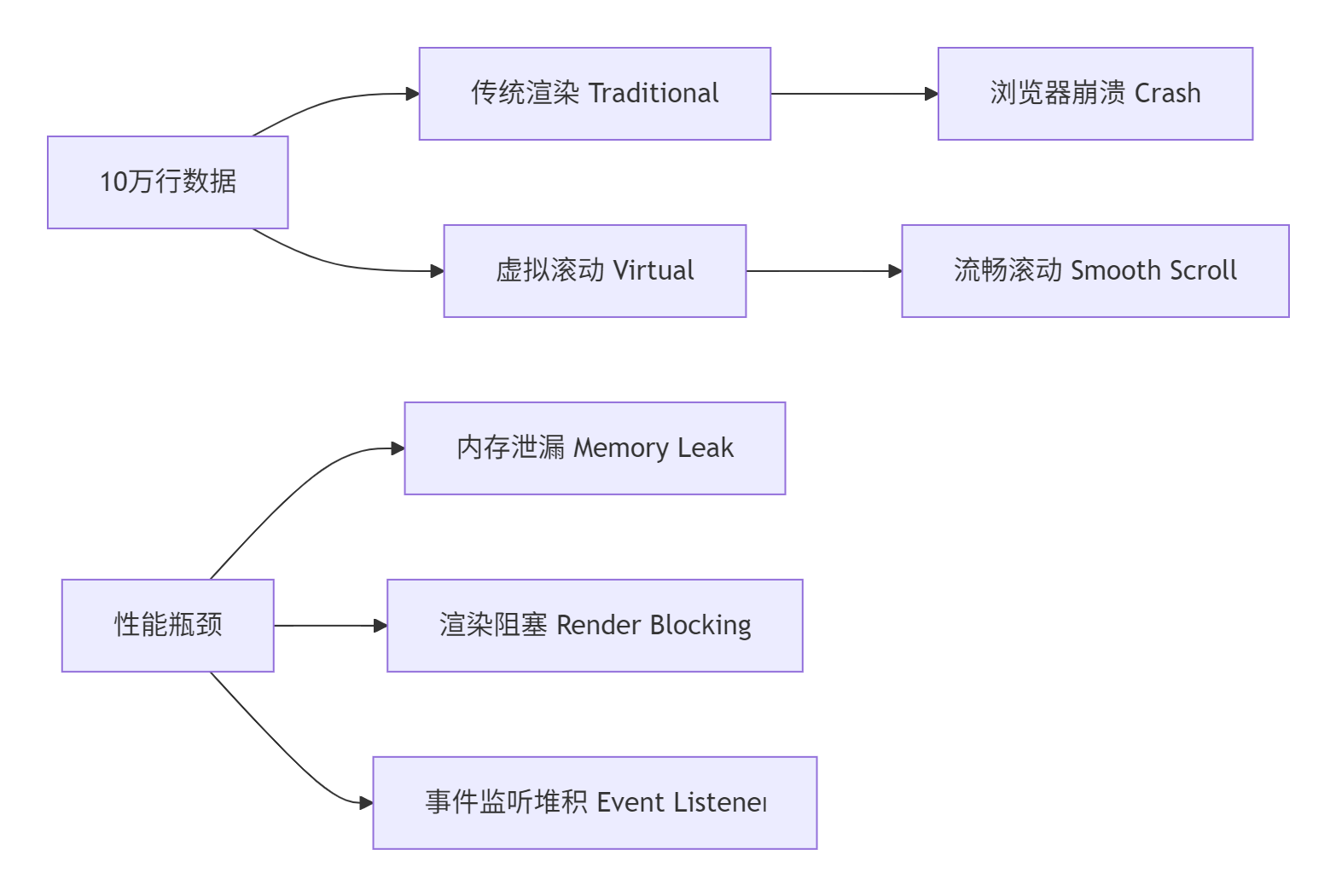 虚拟滚动技术将渲染复杂度从O(n)降至O(1),实现海量数据流畅浏览
