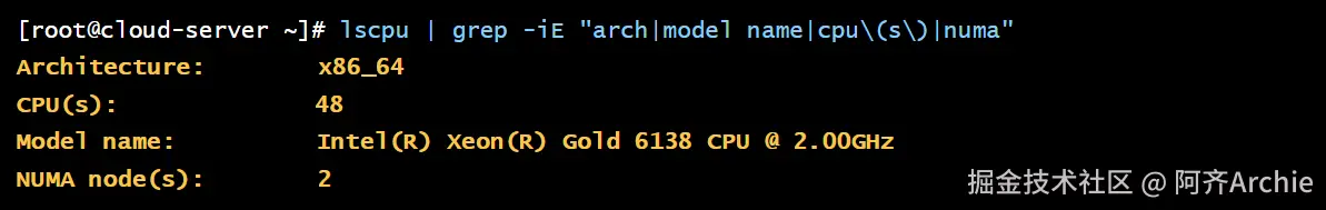 lscpu | grep -iE "arch|model name|cpu(s)|numa"