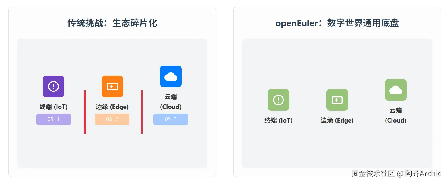 openEuler 已经超越了一个传统操作系统的范畴,它正在成为一个连接芯片、设备、边缘节点和云端数据中心的 "软件产业链生态圈" 。这种"从芯到云"的整体能力,正是 openEuler 在万物互联时代,赋能千行百业进行全场景数字化转型的核心价值所在。