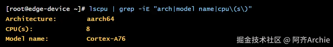 lscpu | grep -iE "arch|model name|cpu(s)"