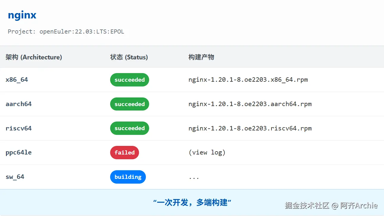 OBS 是 openEuler 社区的统一构建平台,它确保了同一个软件包的源码,能够被自动地、一致地编译成适配不同架构和场景的二进制包,是维系整个生态链同构性的核心基础设施。