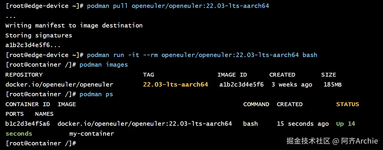 # 在 ARM 架构的边缘节点上# 1. 拉取 openEuler 官方 aarch64 容器镜像